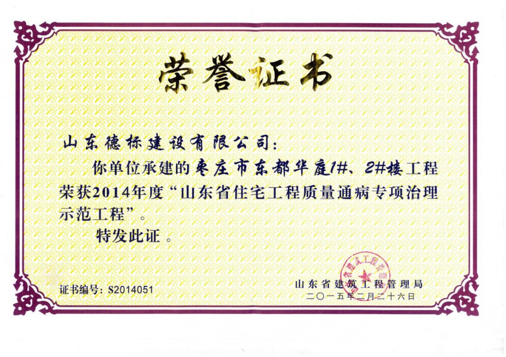 2014年度山東省質(zhì)量通病專(zhuān)項(xiàng)治理示范工程-東都華庭1#···