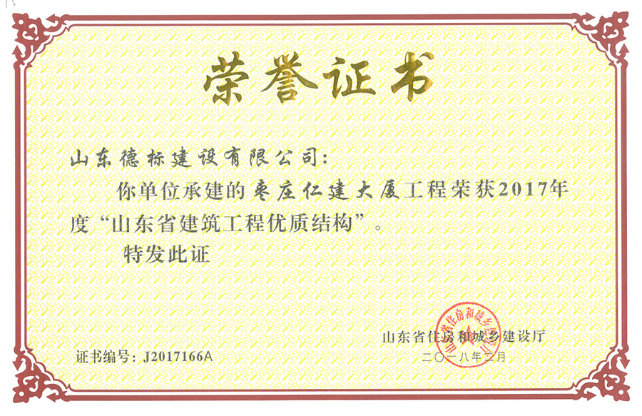 2017年度山東省建筑工程優(yōu)質(zhì)結(jié)構(gòu)-仁建大廈工程