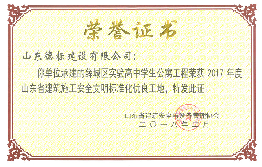 2017年度山東省建筑施工安全文明標(biāo)準(zhǔn)化優(yōu)良工地-薛城區(qū)···
