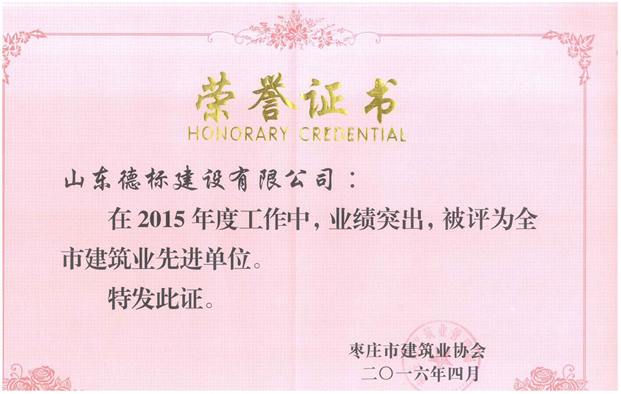 2015年度市建筑業(yè)先進(jìn)企業(yè)