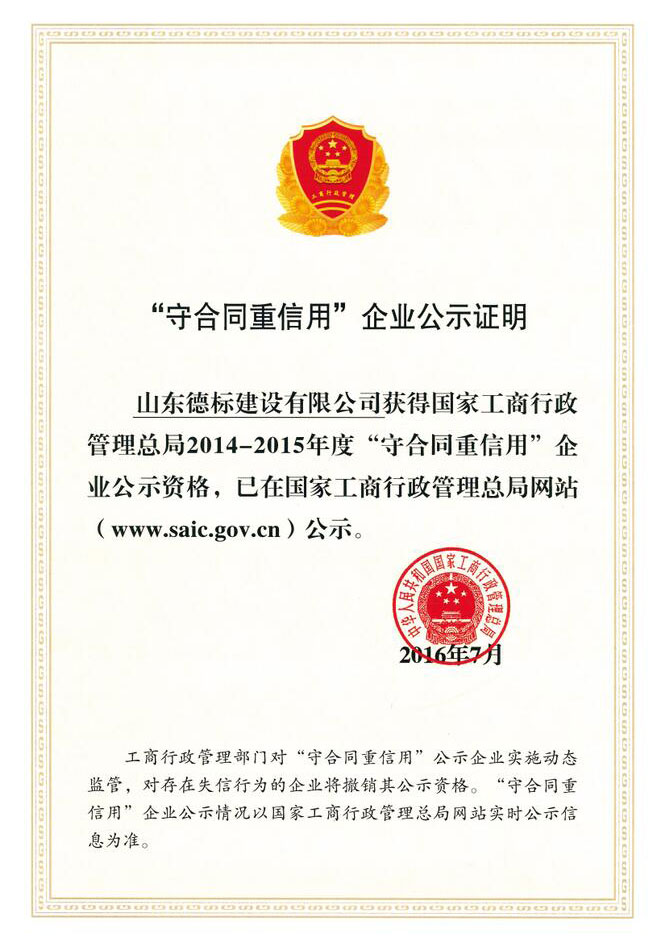 國(guó)家工商行政管理總局2014-2015年度“守合同重信用···